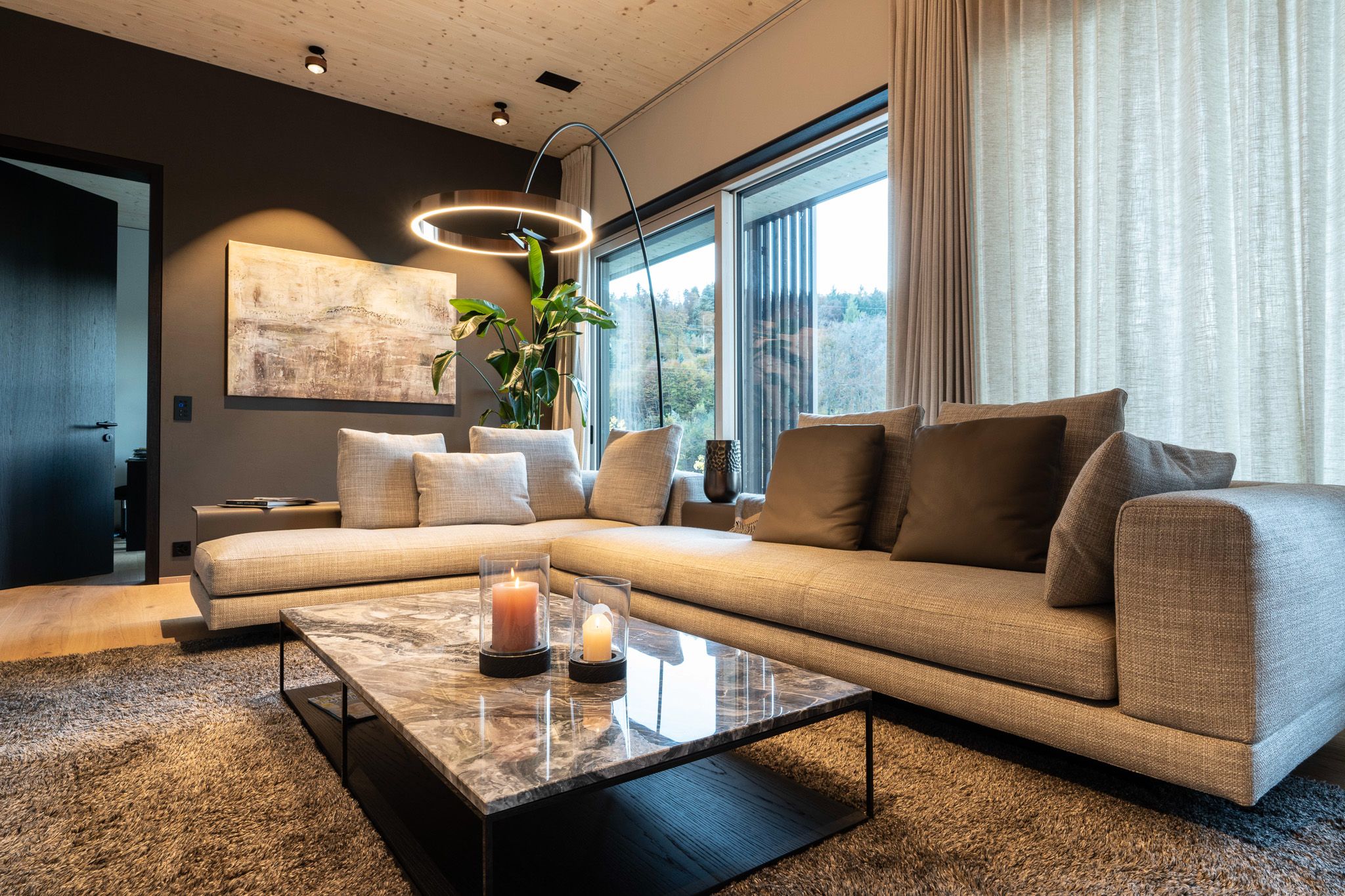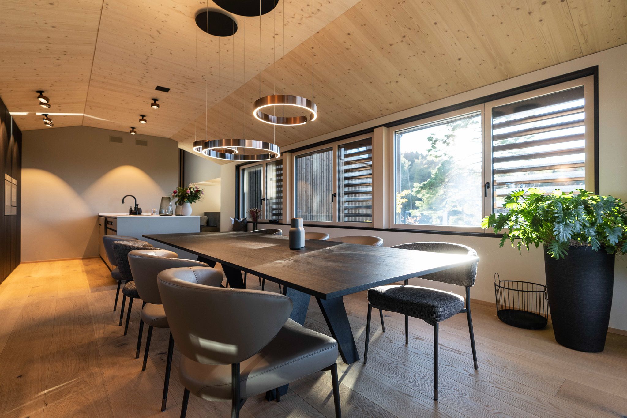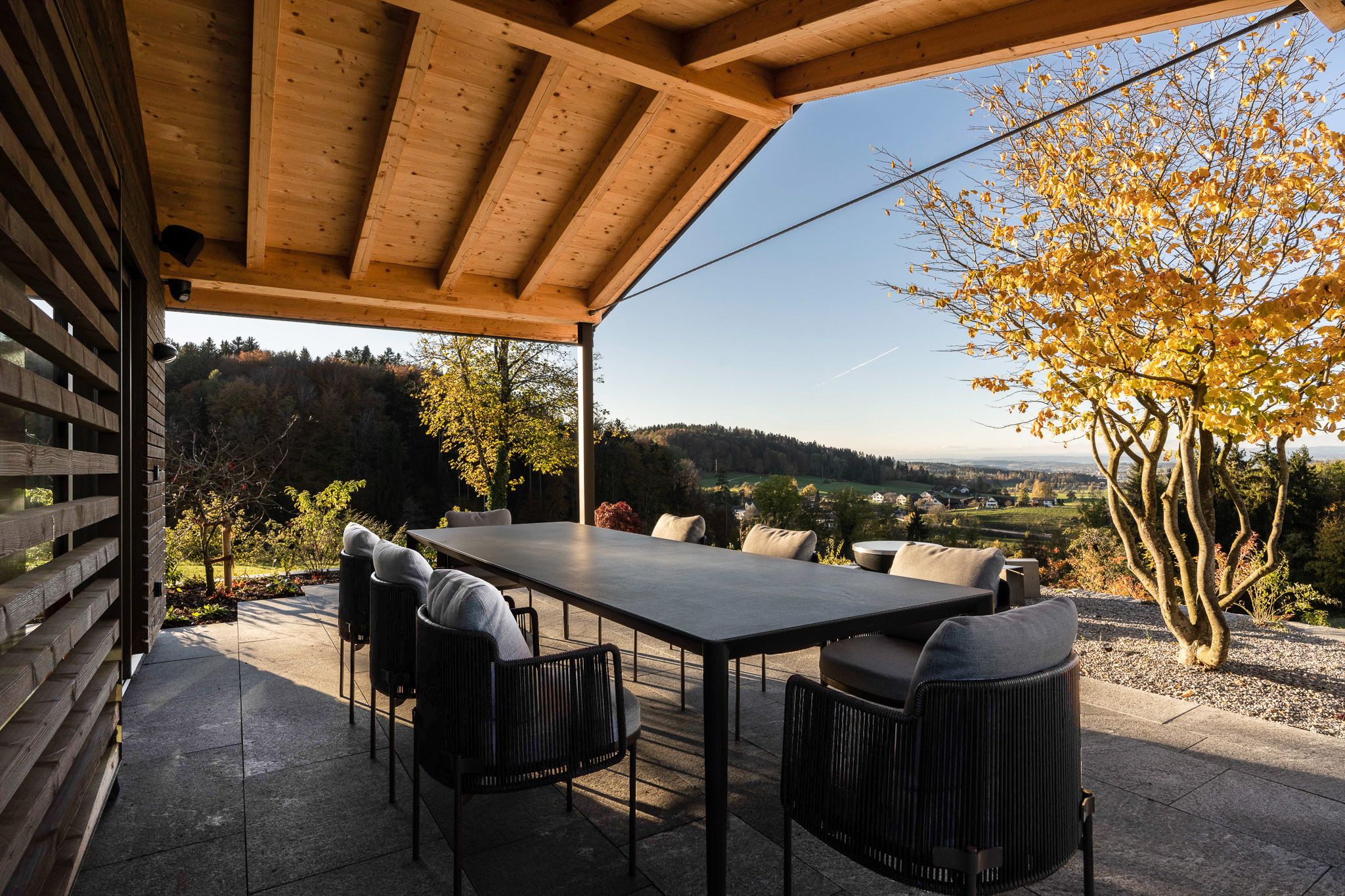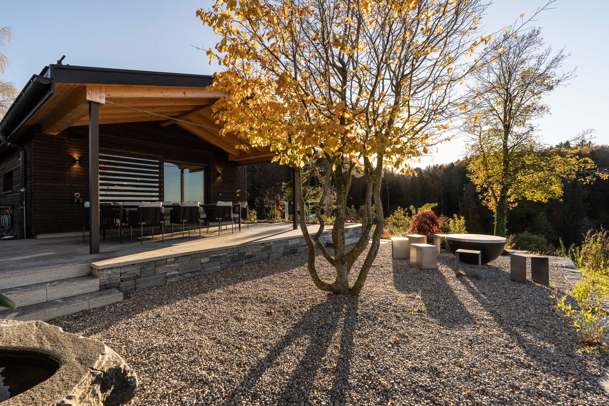 Ein Einfamilienhaus mit allem was das Herz begehrt. Der Holzelementbau fügt sich perfekt in die ländliche Umgebung ein. Das ganze Dach ist mit PV-Panels belegt und sorgt für eine positive Energiebilanz. Der Innenausbau wurde in Zusammenarbeit mit einer Innenarchitektin gestaltet, besticht durch hochwertige Materialen und ist eine Wohlfühloase. Die Aussicht auf dem Gartensitzplatz und am Pool ist unbeschreiblich.