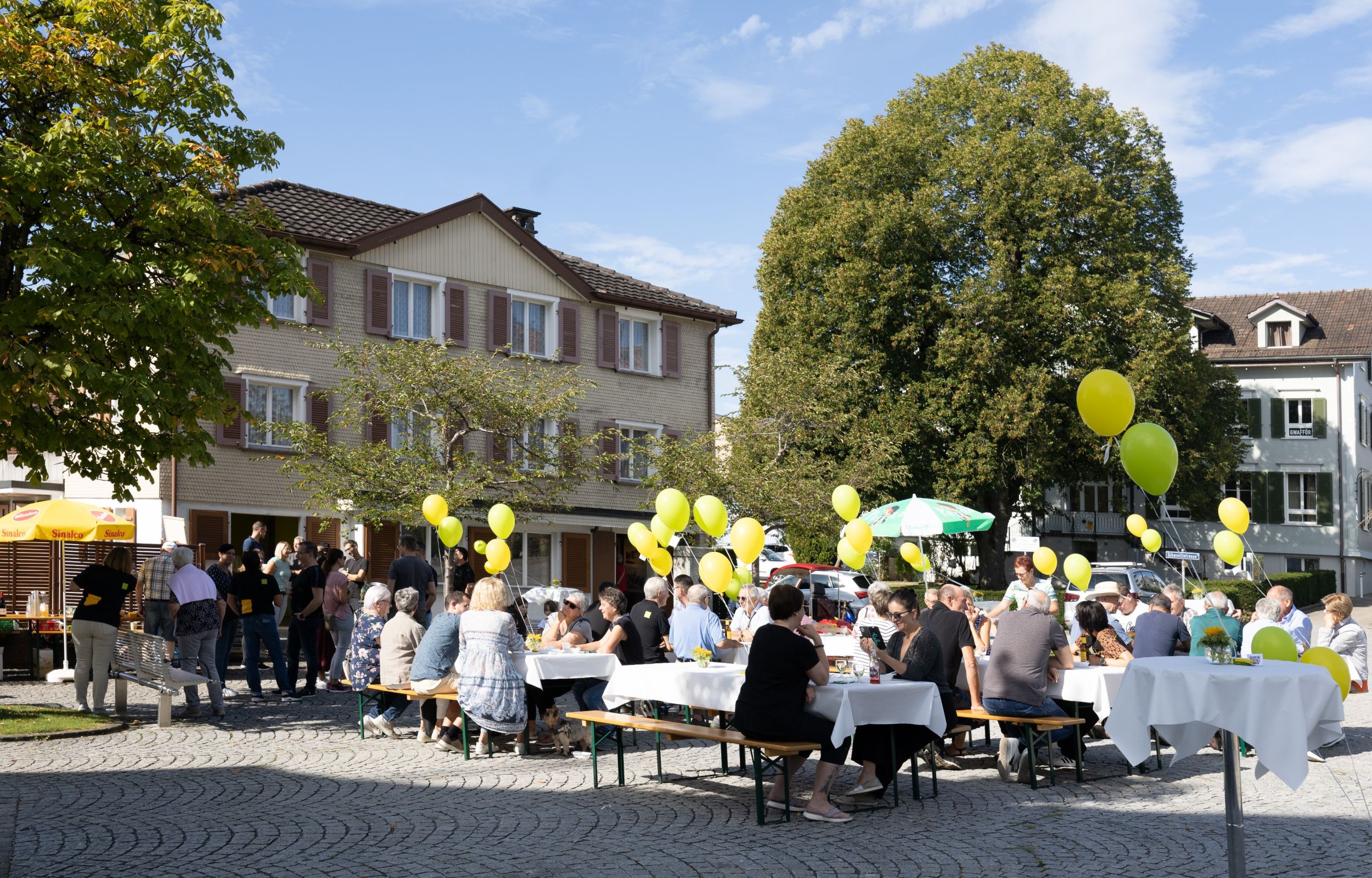 Am 16. September 2023 traf sich die Bevölkerung auf dem Dorfplatz. Die gelbgruen AG lud ein, um den Austausch rund um das Projekt anzuregen. An diesem Event durften wir auch unseren neuen Namen «gelbgruen» und unser neues Firmenprofil präsentieren. Die positive Stimmung gibt uns Schwung unser «Dorfplatz-Projekt» weiter zu entwickeln und wir freuen uns in Zukunft auf viele Begegnungen im Zentrum von Engelburg.